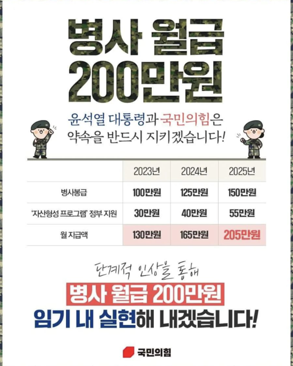 윤석열 대통령의 병사 월급 200만원 공약